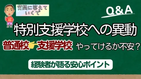 その他コラム・質問集中学校から特別支援学校へ異動はできる?経験者が語る安心ポイント【Q&A】 普通校から特別支援学校へ異動したい先生へ。不安を感じやすい「授業の進め方」「支援学校ならではの違い」「おすすめの本」などを、経験者がQ&A形式でわかりやすく解説します。 2025.09.10その他コラム・質問集