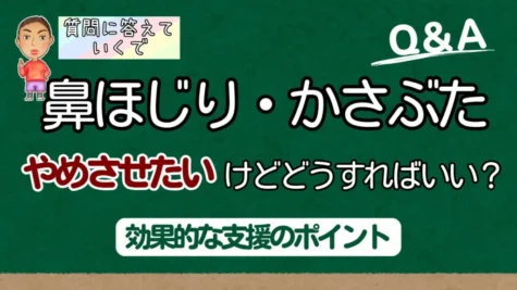 その他コラム・質問集子どもの鼻ほじり・かさぶた取りをやめさせたい!効果的な支援とは?【Q&A】 子どもの鼻ほじりやかさぶた取りは教育や支援の現場でよく見られる行動です。完全にやめさせるのは難しいですが、対応の基本や減らす工夫は可能。本記事では先生や支援者向けに具体的な支援方法を解説します。 2025.09.09その他コラム・質問集