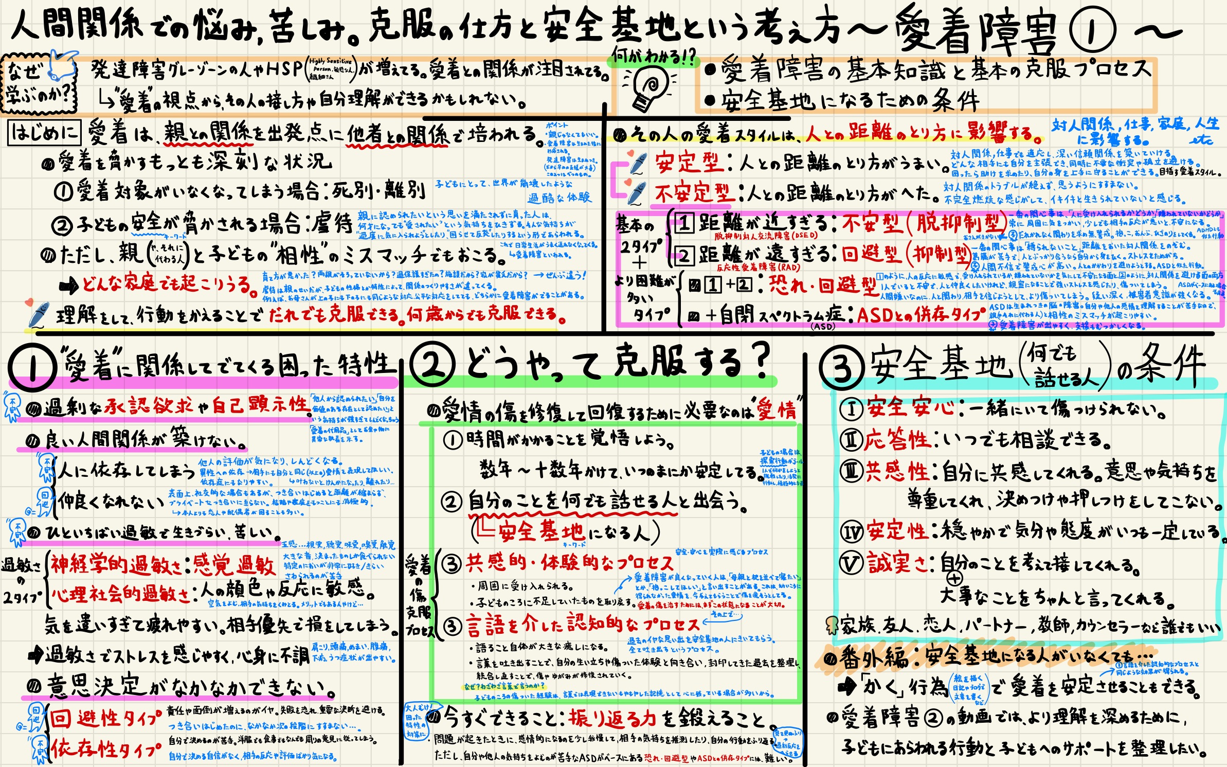 今回は、愛着障害の原因・安全基地の条件・克服のプロセスを整理しました。