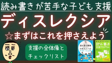 障害のある子ども支援読み書きが苦手/ディスレクシア支援の全体像と支援のポイント 発達性ディスレクシア(読み書き障害)について、わかりやすく解説しました。子どもの年齢別チェックリストを通してディスレクシアに気づくポイントや、支援の具体的な方法を紹介。支援の全体像がわかります。特別支援教育や子育てに役立つ情報が満載です! 2025.01.30障害のある子ども支援