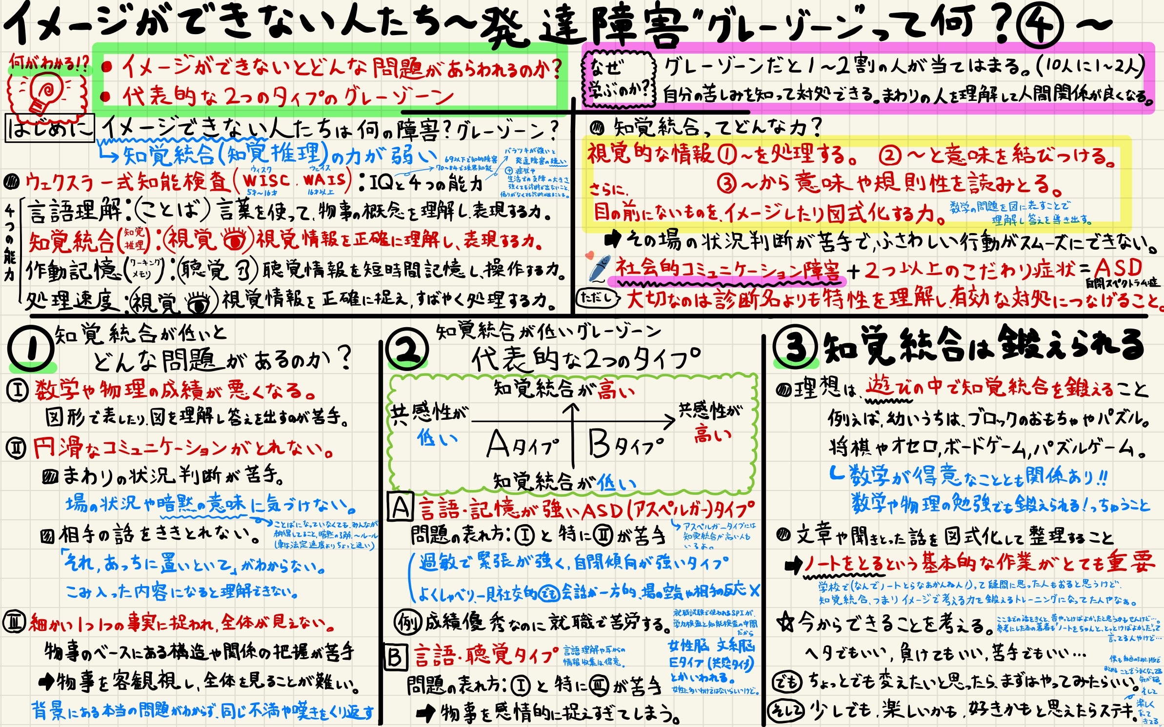 ASDの診断が出ても、得意苦手のバランスが人によって違うねん。だから、イメージする力が弱いっていう特性を理解して、行動につなげることが大事やねんな。
