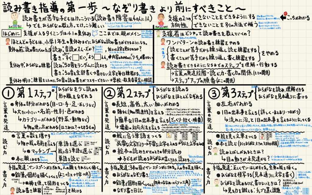 読み書きのステップを意識して試行錯誤することで、子どもに合った読み書き支援ができるようになっていくんやで。