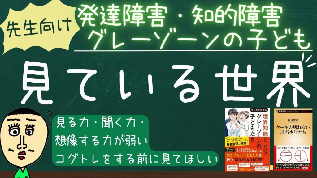 今回は、境界知能発達障害グレーゾーンの子どもたちについて解説しよか。彼らは見る力・聞く力・想像する力が弱いからトラブルの中におることが多いねん。