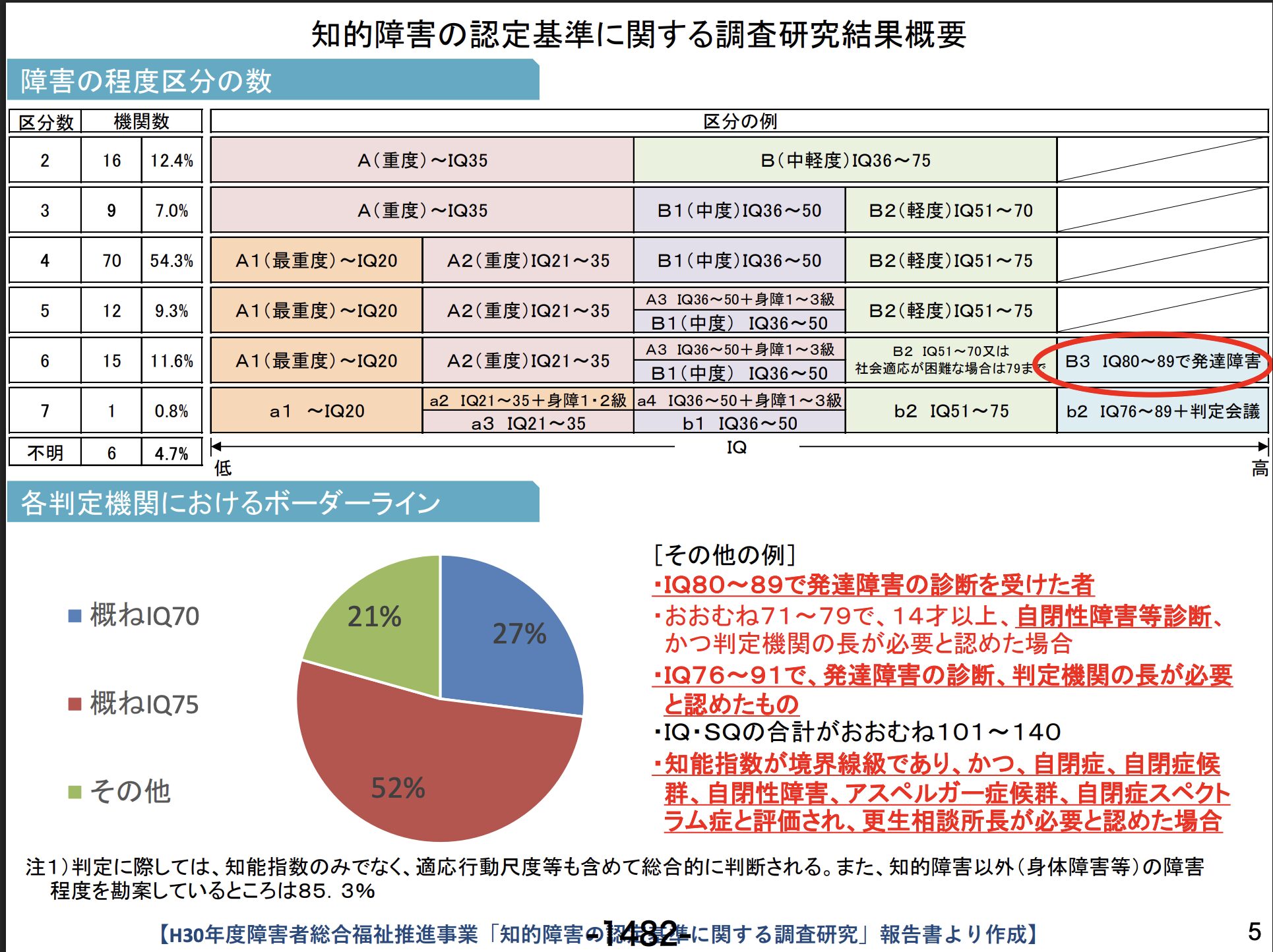 参考:厚生労働省HP『療育手帳に係る判定基準統一化の検討進捗報告